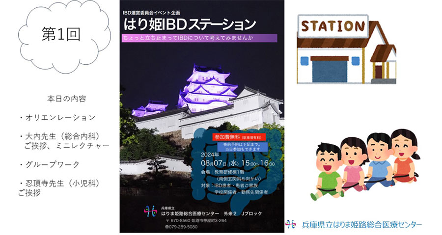 令和6年8月7日(水)15時から、はりま姫路総合医療センター講堂にて、IBDセンター運営委員会主催による患者情報交換会『第1回はり姫IBDステーション』が開催されました。