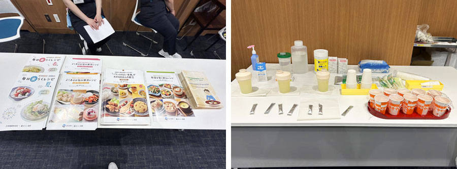 立秋とはいえ、まだまだ暑い中、20名の患者さん、ご家族が参加されました。会場では、疾患や食事について解説したパンフレットの配布、注射のデモンストレーションが出来るブースや、エレンタールの試飲ブースなどが設けられ、患者さんや医療スタッフも参加して、賑わっていました。