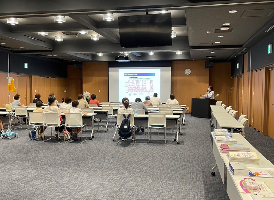 8月6日にIBD患者さんやそのご家族等を対象とした患者会「IBDステーション」を開催しました。3回目となる今回は、大内医師からIBDの病気や治療に関する説明の後、数名ずつのグループに分かれて日頃の困り事について患者さん同士で話し合う時間を設けました。