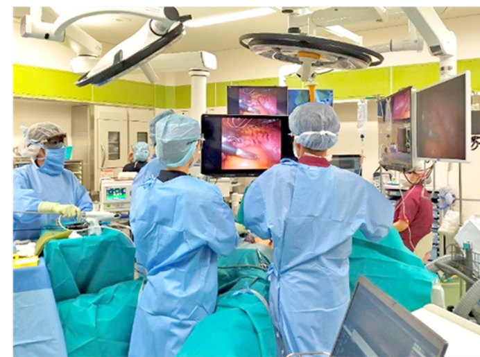 当院は日本胃癌学会認定施設Bに認定されており、日本内視鏡外科学会技術認定医(胃)2名が在籍しています。また、大腸領域には日本内視鏡外科学会技術認定医(大腸)1名、食道領域には日本食道学会食道外科専門医1名が常勤しており、これらの指導の下に消化管全領域をカバーしたアドバンストな手術を日々行っています。通常の腹腔鏡や胸腔鏡を使用した低侵襲手術のほか、最近ではロボット支援下手術も食道、胃、直腸領域で取り組みを始めています。