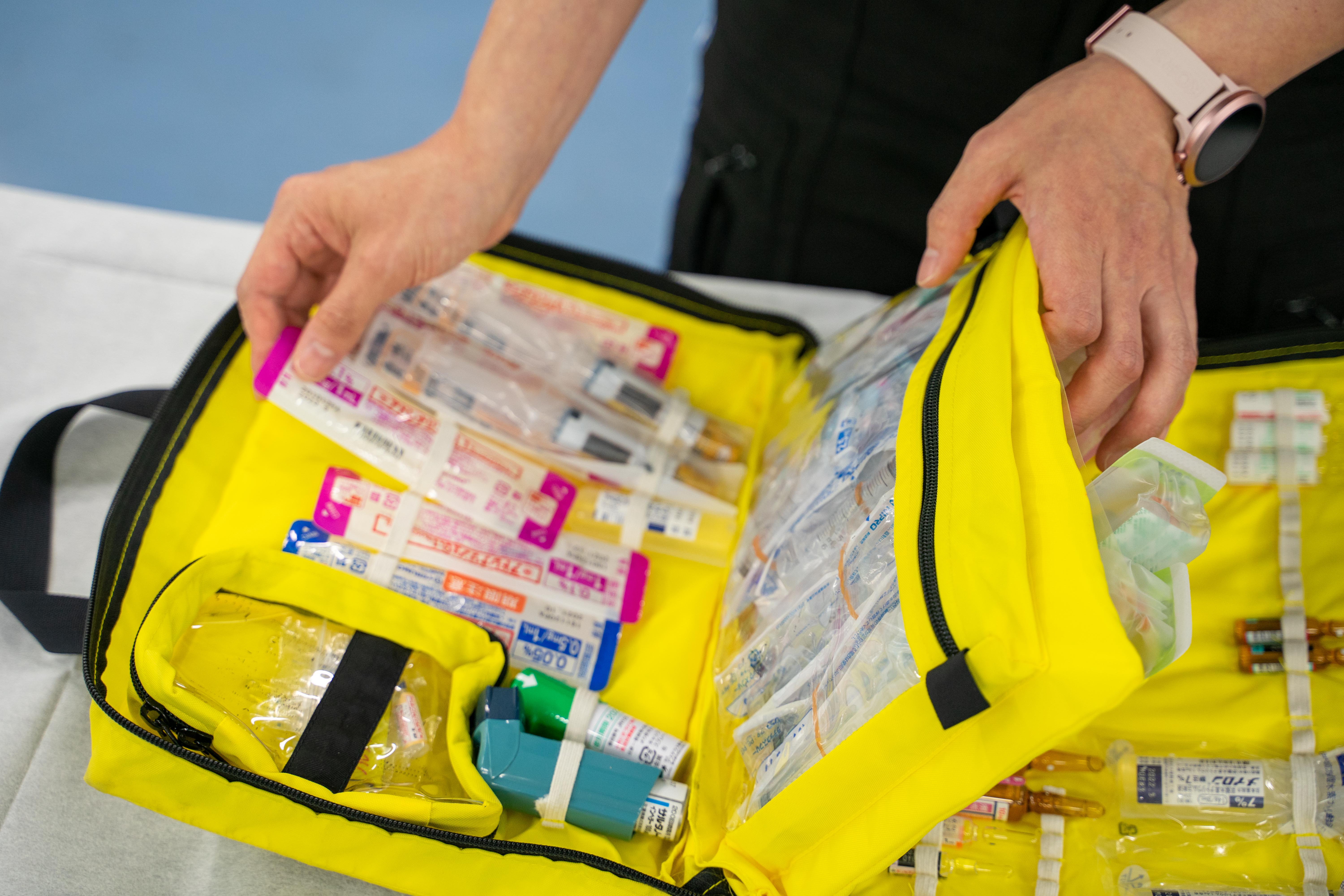 必要な荷物を持ち、ドクターヘリに乗り込む。